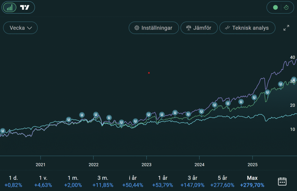 Givet utdelningarna kan man återinvestera dessa för att dra nytta av ränta‑på‑ränta‑effekten, vilket passar en långsiktig spar horisont.